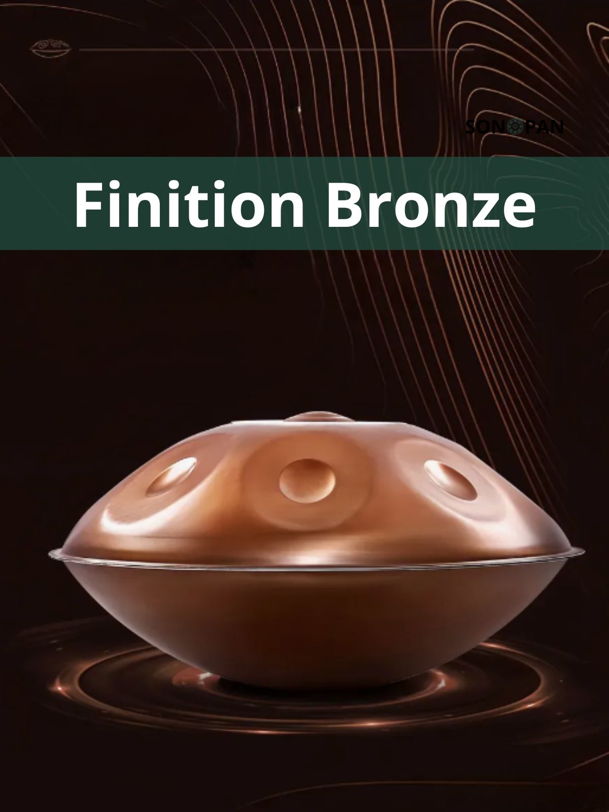 Ce handpan en acier nitruré arbore une finition bronze chaleureuse et organique. Chaque pièce est unique, martelée à la main, alliant esthétique brute et acoustique stable. Une vraie présence visuelle et sonore.