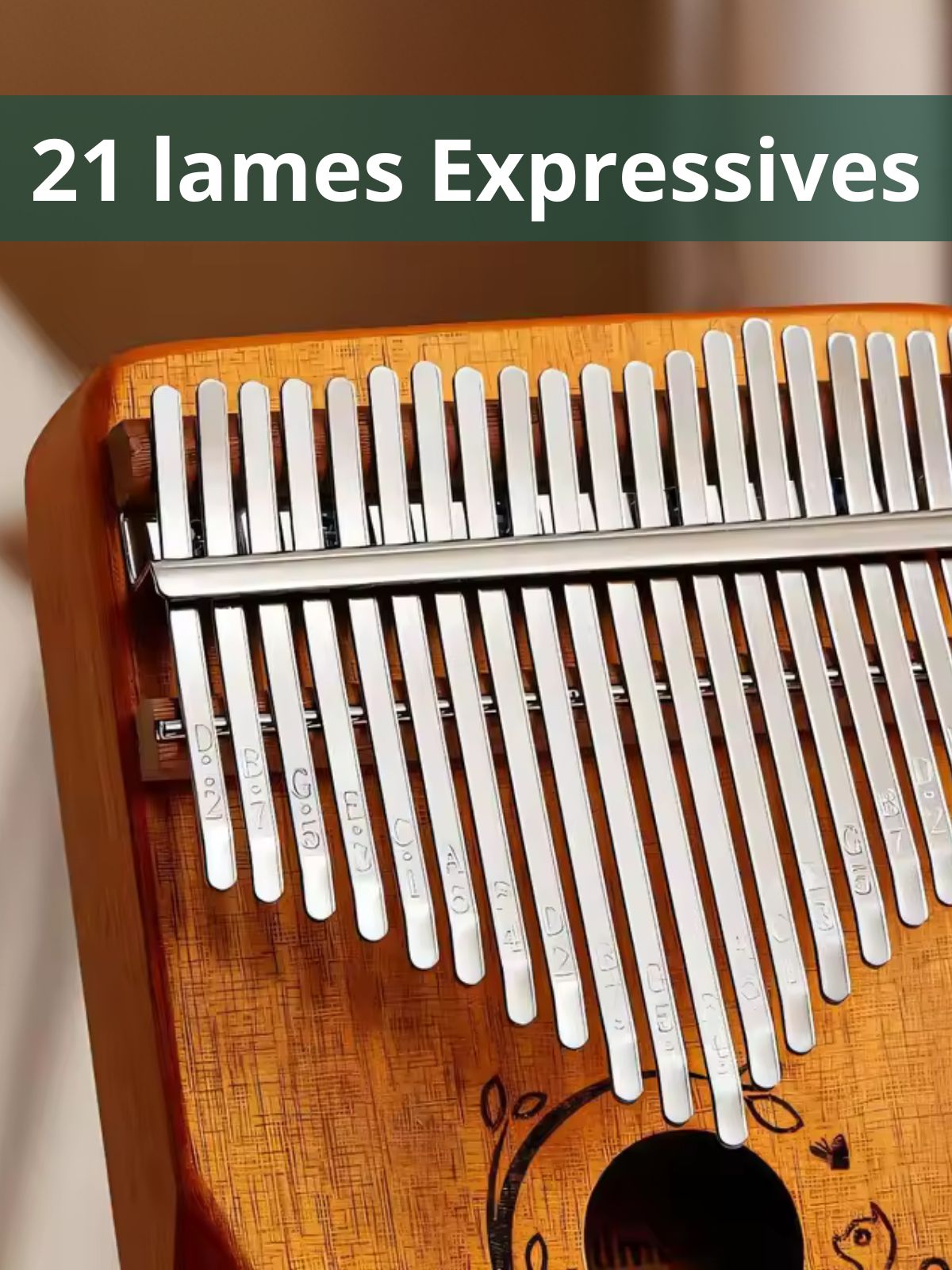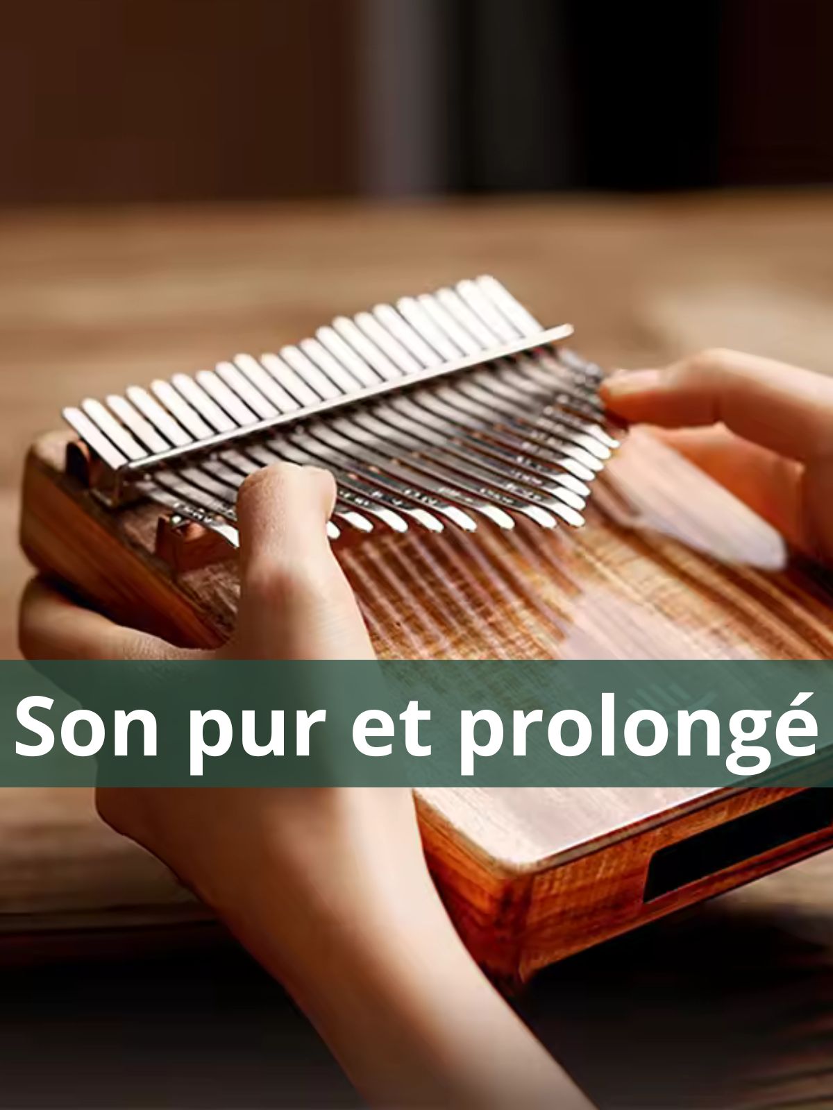 Sonorité claire et cristalline. Les lames en métal minéral gravé offrent des notes précises, douces et prolongées.