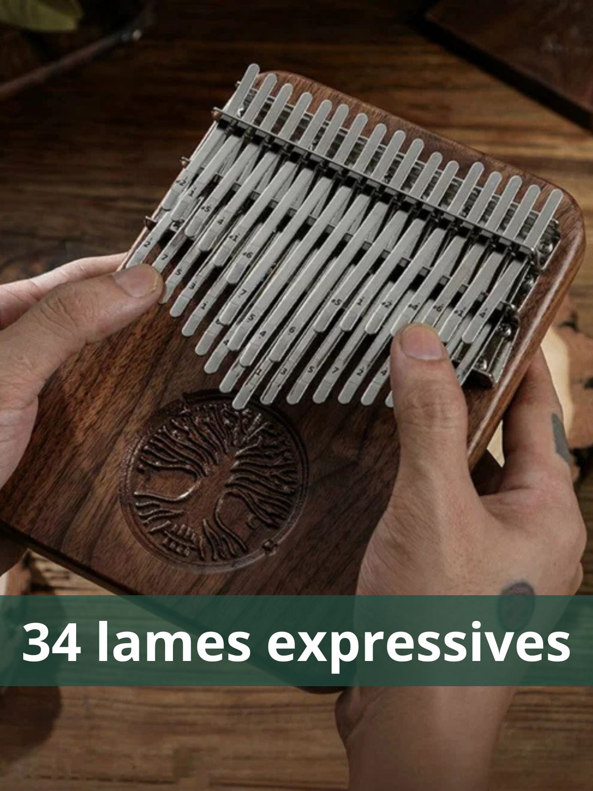Kalimba 34 Lames en Noyer Américain : L’Instrument d’Exception pour une Richesse Musicale Inégalée